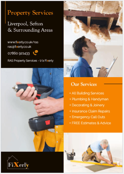 Hello and welcome to 'RAS Property Services' – t/a FIXERLY . We are your local, independent property service in Liverpool, Sefton & all surrounding areas. We believe we are perfectly placed to offer you a truly ONE STOP PROPERTY SOLUTION. Our various building trades and handymen can turn their hands to almost any task you ask. No job is to small and we usually won’t turn any away as we always aim to please:)